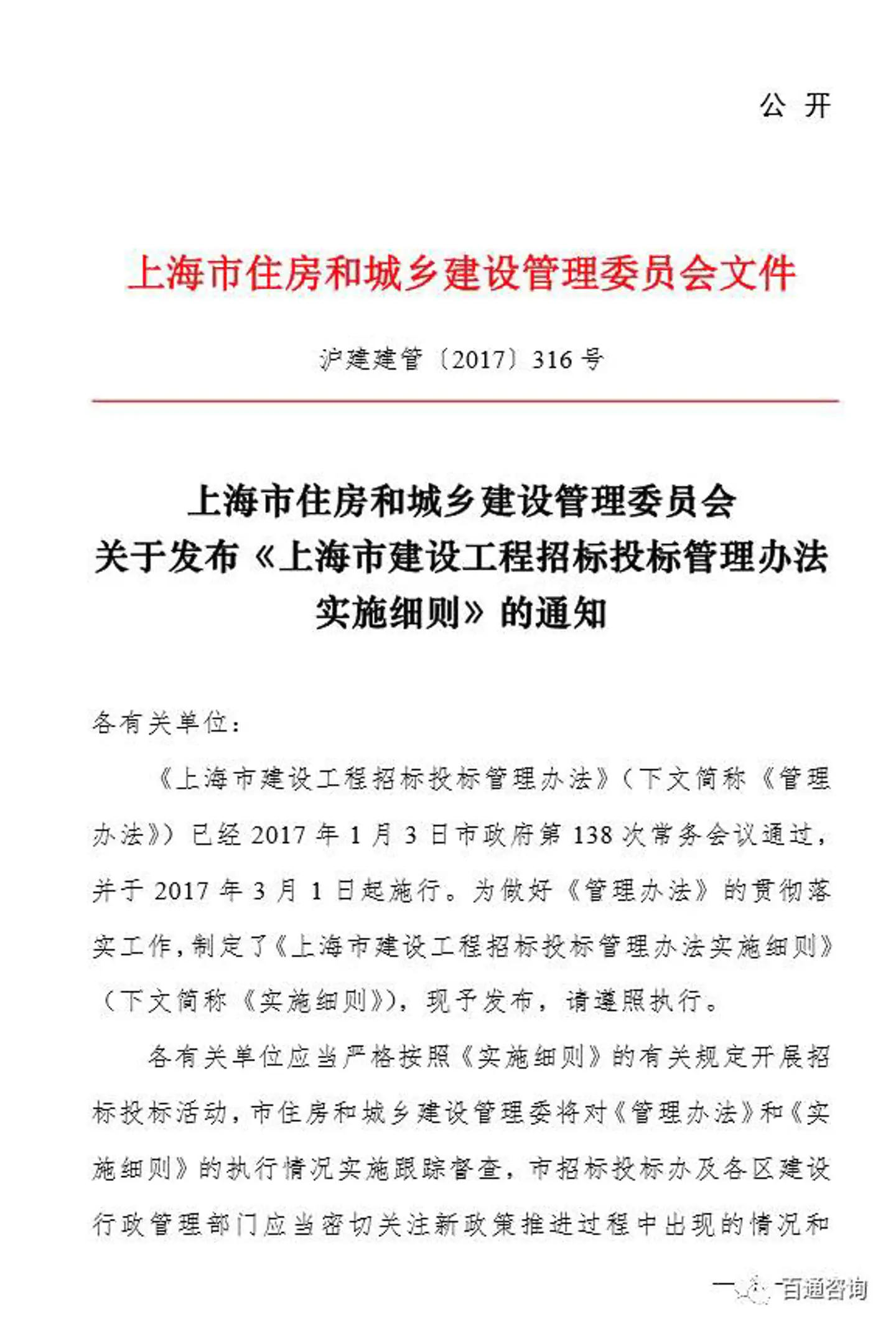 上海市建设工程招标投标管理办法实施细则(沪建建管[2017]316号)