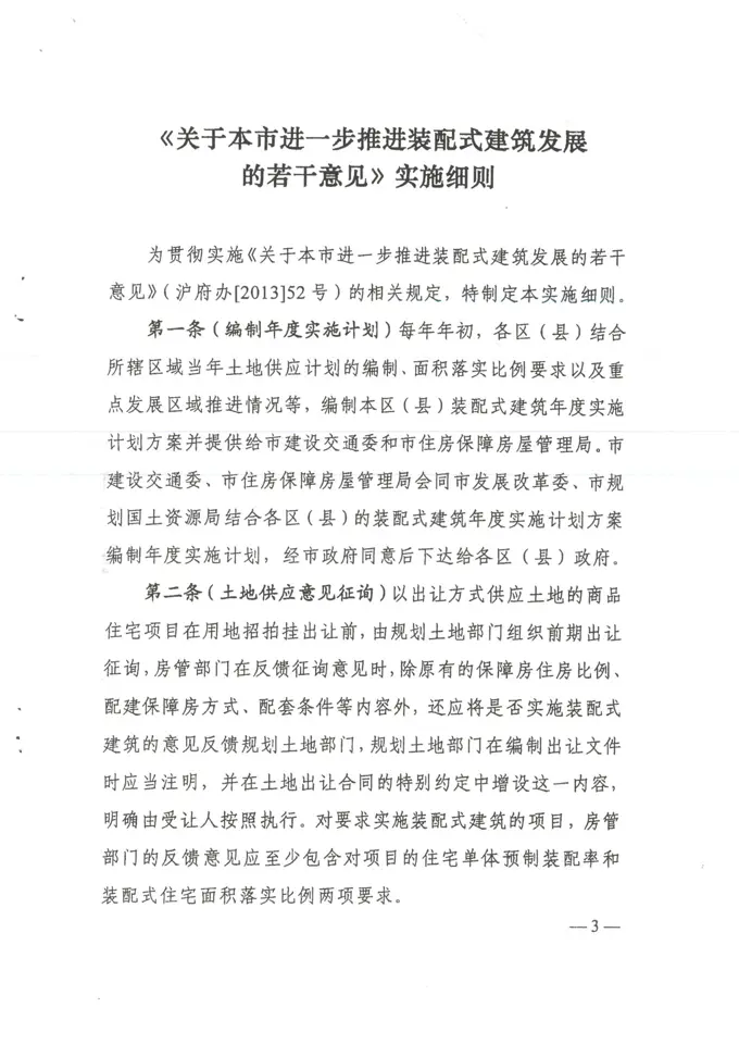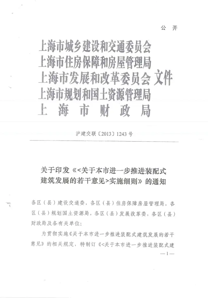 关于印发《<关于本市进一步推进装配式建筑发展的若干意见>实施细则》的通知(沪建交联[2013]1243号)